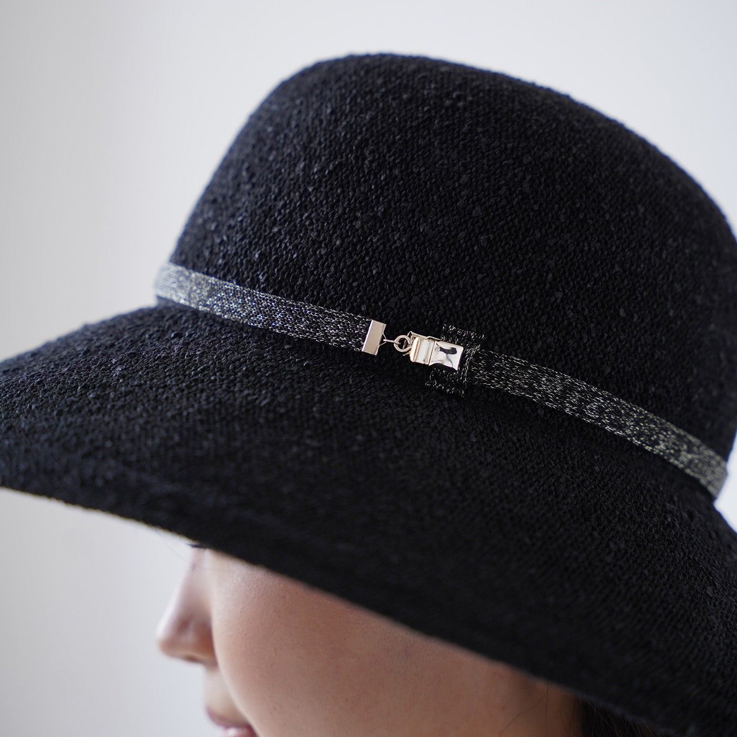 快適な装着感と女性らしい優雅なデザインが特長。また風に飛ばされないようにハットクリップも付属。普段はデザインリボンとしてさりげなさを演出。