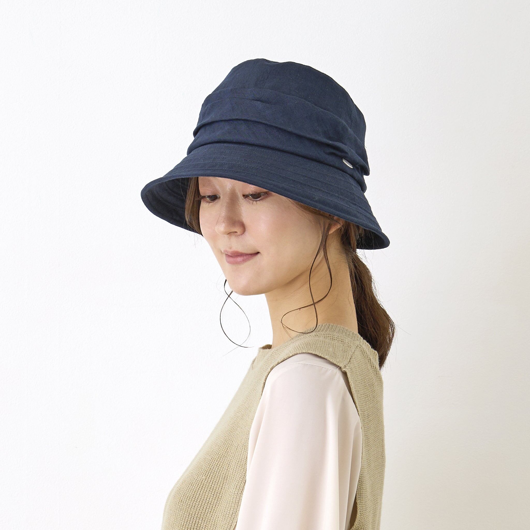 『L遮光HWドレープクロッシェ』は、中心部分にタックが入っており、高級感が漂います。広ツバが付いているため風が入りにくく、快適な空間を実現します。2サイズ3色展開でお選びいただけます。サイズ調整ができるので頭にフィットし快適にご使用いただけます。