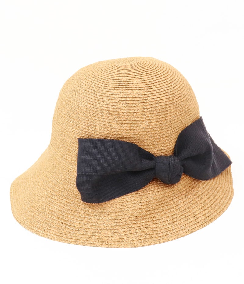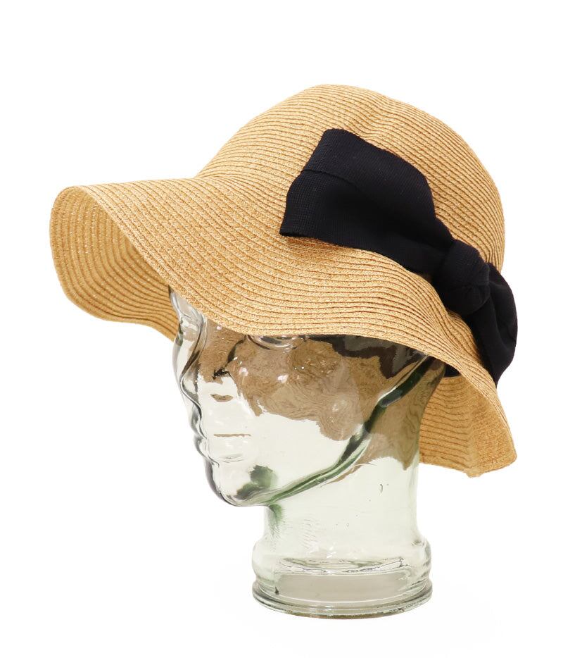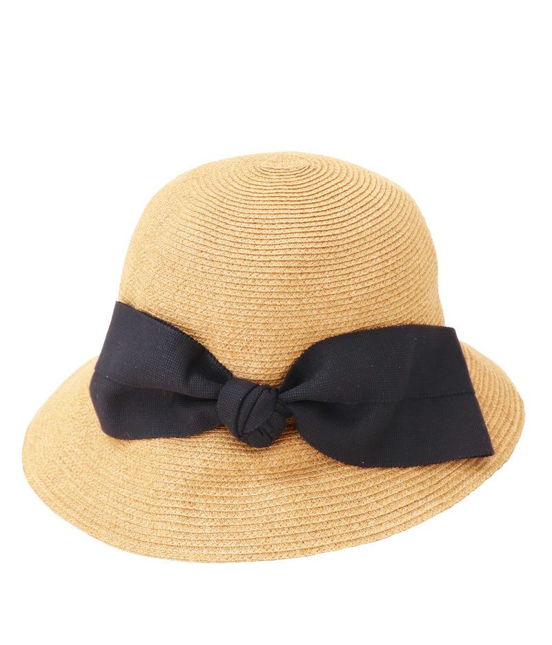 洗えてたためるペーパー素材を採用した、リボンがアクセントの帽子。