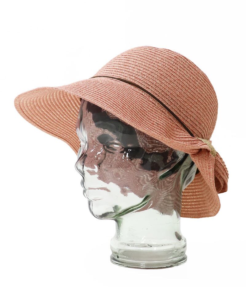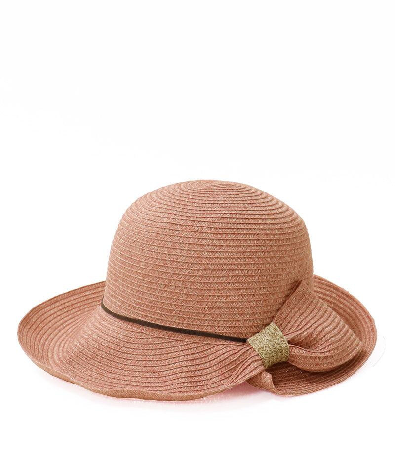 つばの部分をぐいっとリボン風に仕立て上げたユニークでおしゃれな帽子です。